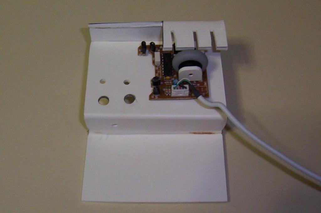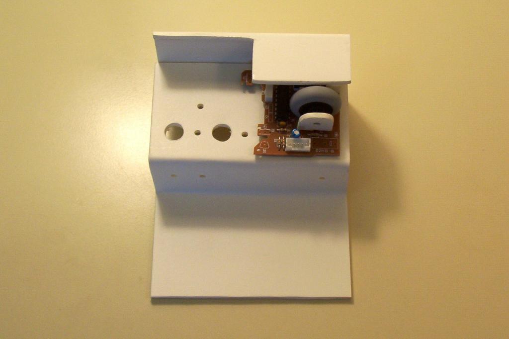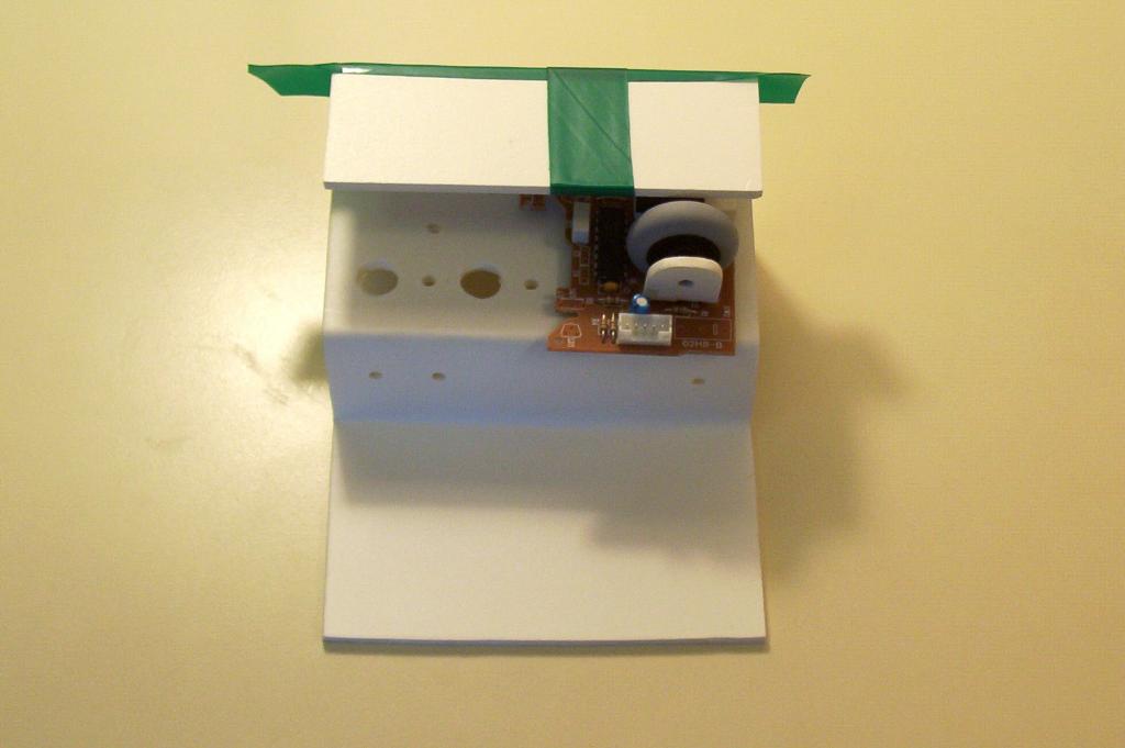 Now take the BETS1 interface that you created, and lay it on the base. Measure and mark an area slightly larger than the size of the mouse. The objectives are to provide enough shade from ambient light, while at the same time providing enough space for the mouse wheel to spin freely.